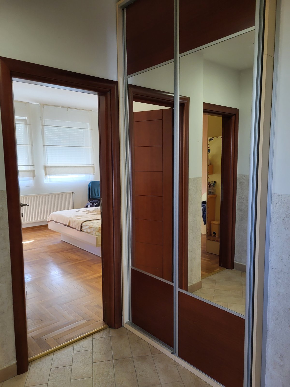 Stan ima 151m2 i postoji mogućnost pravljenja dve komletno zasebne stambene jedinice.